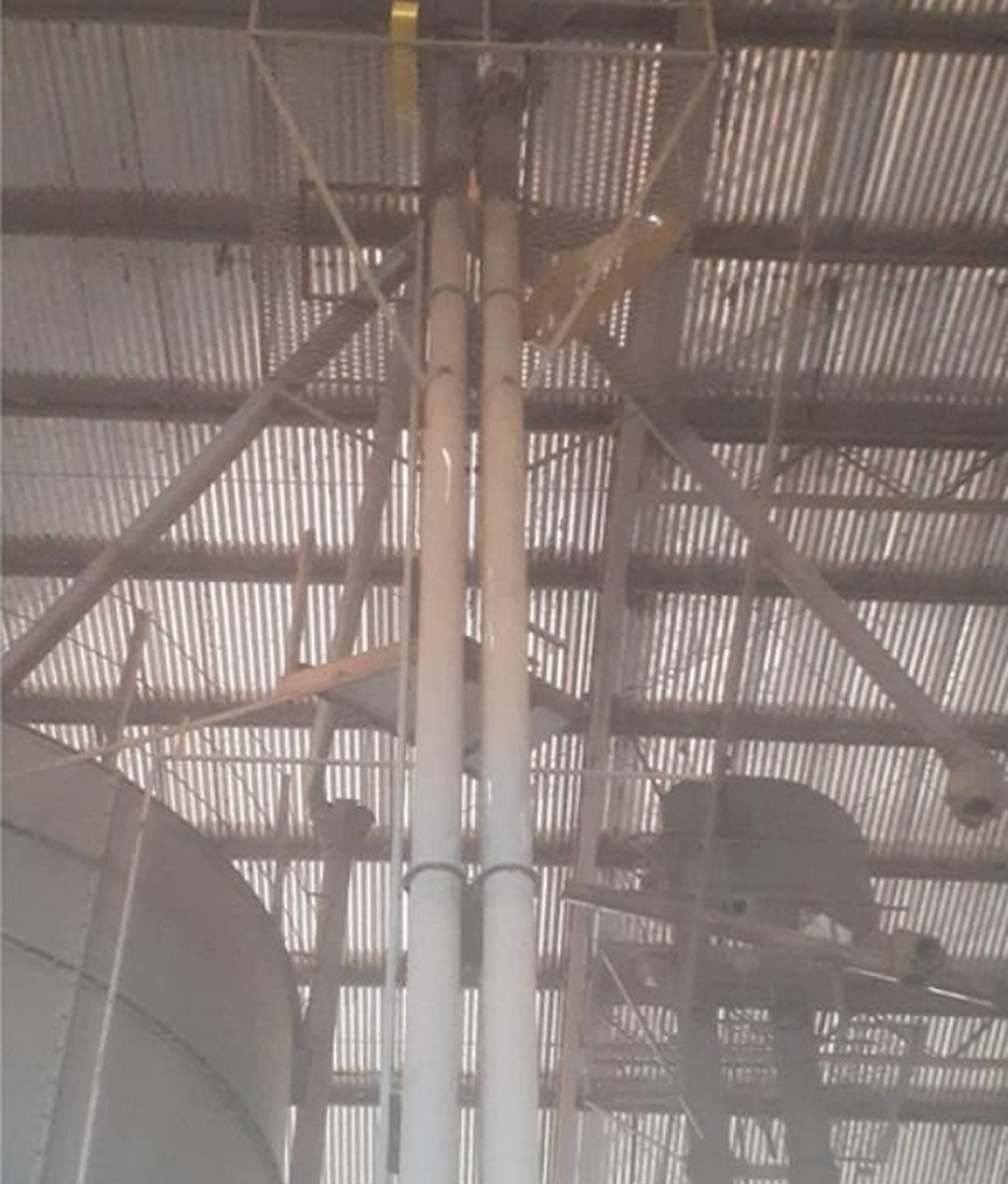 Conjunto de 2 elevadores de eixo duplo, cada um com 14,5 metros de comprimento, contendo correia, canecas, transmissão e motor independente. Sistema duplo e sincronizado para transporte vertical de alta capacidade em processos contínuos.